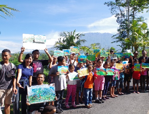| 2017.3.5 | トレッキング/GMBワークショップ 朝から渡航前に寄付金を集めて贈呈したKlencingアートスクールの子供達と一緒にアグン産のふもとの美しい棚田に絵を描きに出かけました。バリ島渡航前から子供達の書いた絵を使ったタンブラーを販売していた研修生ですが、この日に、美しい景色のもと野外でアートスクールの代表の方に寄付金を贈呈することができました。研修生もお返しに、子ども達の描いた干支の絵を頂きました。 夜はインドネシアと日本のGMBのメンバーとが一緒になり、地元の若い人達も招待して一緒にワークショップを行い、様々なゲストスピーカーから貴重なお話しを聞いたあと、地元の若い人達が抱えている悩みやそれをどのように解決して行けばよいかなどを話しあい、発表してもらいました。参加者全員にとって、とても有意義な会となりました。