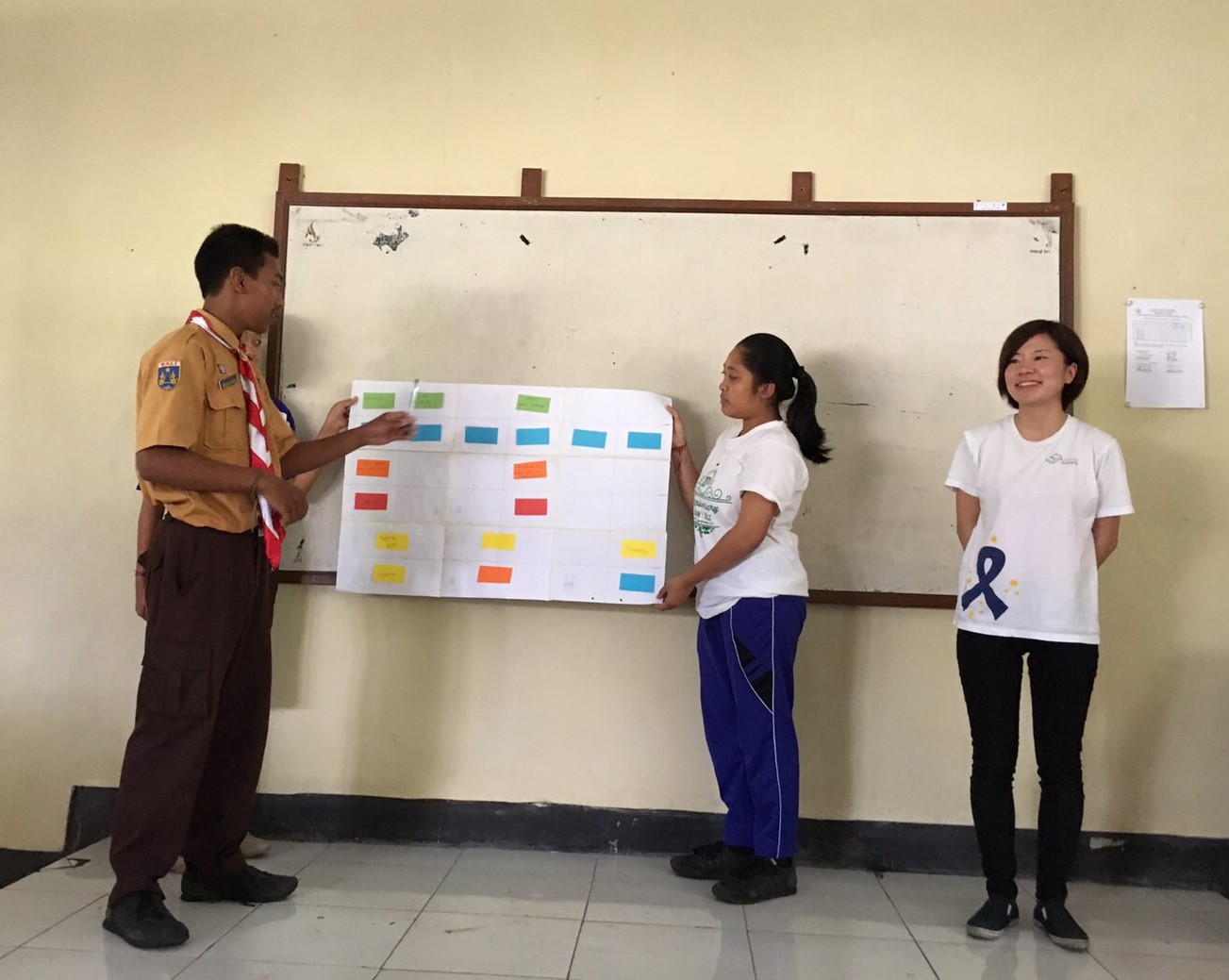 | 2017.3.4 | 観光/環境問題ワークショップ 本日はカランガサム県の観光に行きました。バリの伝統的な布であるソンケットを作っている現場に見学へ行ったり、アグン山の見える美しい景色を見に行ったり、バリ島の美しい自然や伝統工芸品に魅了されました。夜は研修生の一人が、環境問題に関心のある現地の若者を対象に、環境問題のワークショップを行いました。