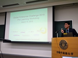| 2018.3.10 | 高校生の国際競技の事前学習会で貢献 当センターが実施している高校生の国際競技Global Enterprise Challengeの事前学習会にて、参加する高校生達を前に、研修生のIvanさんが立派に司会を務めてくれました。 ![]() |