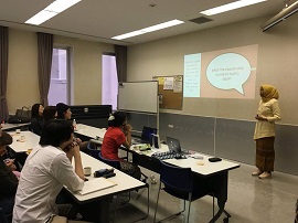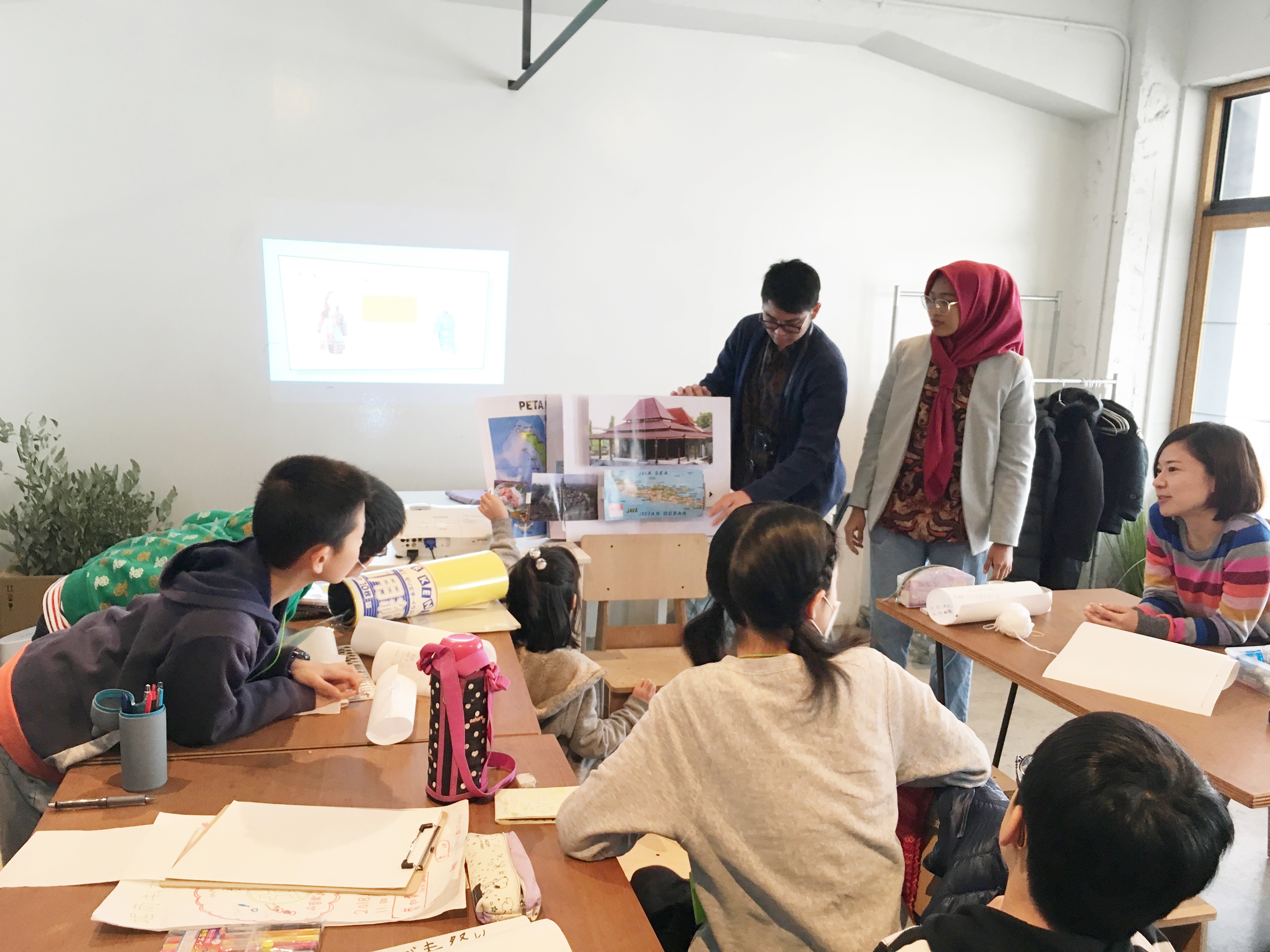 | 2018.3.4 | 子供達にインドネシアの紹介 養正小学校で研修中のIntanさんが、当センターで研修中のIvanさんと一緒に、小・中学生が行っている商店街の賑わいづくりの活動「堀商キッズチャレンジ」に参加。インドネシアについて、簡単な英語で紹介してくれました。