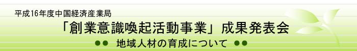 ![]() 昨年の春から岡山と倉敷の両地域で実施していました、平成16年度中国経済産業局創業意識喚起 活動事業の成果発表会が無事終了いたしました。 当センターが支援していた倉敷市立琴浦南小学校と 倉敷市立連島中学校の2校も、地元の企業の方々の 支援のもと、素晴らしい成果を見せてくれました。 関係者の皆様、ご苦労様でした。 |