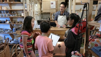 商店街の”みりょく”発信企画会議 まずは自己紹介と堀商キッズ社の事業目的を確認しました。そして、秋には京都大学で開催されるトレードフェアで店舗を出すにあたり、どのように堀川商店街や近隣地域の魅力を伝えるか考えるために、商店街や地域のお店に取材調査にでかけました。 ![]() |