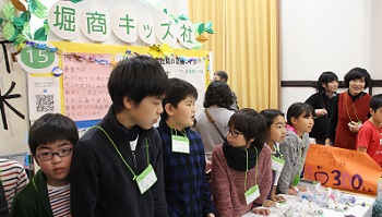 ユース・エンタプライズ トレードフェア 京都大学の百周年時計台記念館で開催されたトレードフェアに堀商キッズ社のお店を出して、堀川商店街を知ってもらうために社員全員でがんばりました。また、トレードフェアでは、商品販売だけでなく、他校の生徒と交流したり、キッズベンチャータウンで、他の小・中学生が考えた新しいビジネスを体験したり、様々なことができました。 ![]()