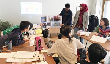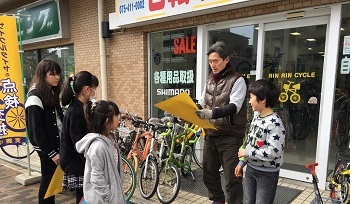 インドネシアからの研修生が2 名参加して、インドネシアについて紹介してくれました。その後、堀川商店街や近隣のお店に、春祭りのイベントのポスターを貼っていただけるようお願いしに行き、夏や秋の活動で一緒だった仲間に、来てくれるように招待状を書きました。