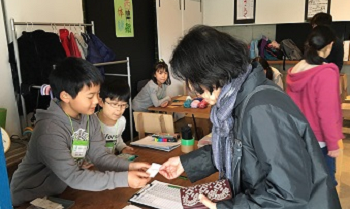 堀商キッズ社の皆で協力して、開店に向けて準備。雨が降って寒いなかお客様が来てくれるか心配しましたが、11 時前には最初のお客様が。徐々に、家族の人や友達たちが来て、皆忙しくなります。午後は、お店の外に出て、商店街を歩いている人達に声掛けします。英語のポスターやチラシも準備していたので、海外からの観光 客の人や留学生の人が大勢来てくれて、とっても良いイベントになりました。