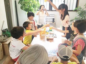 お礼と振り返り 七夕まつりを振り返り、お客さんのアンケートや収支結果を皆で共有した後、堀商キッズ社の目標の達成度や各自の役割分担等について感想や反省点について意見交換しました。その後、お客さんに書いてもらったお願いの短冊を清明神社に奉納してお願いしてきました。そして、売上の収益のうち3000円を西日本豪雨災害の被災者支援に寄付し、残りを社員のお給料としてもらいました。最後は、願いの木を解体して、慰労会! ![]() ![]() ![]() ![]() ![]() |