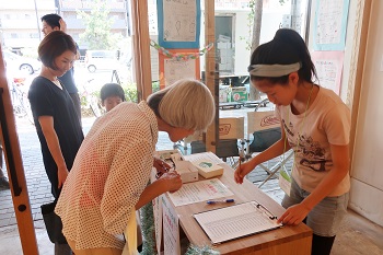 宣伝しよう!商店街に協力依頼 宿題になっていたポスターを商店街のお店に貼って頂くようお願いに行きました。また、お客さんに来てもらうために他にできることを皆で考えた後、達成目標を再確認して各自担当部署に分かれて準備を進めました。 ![]() ![]() |